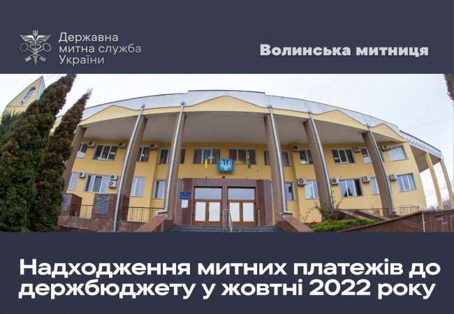 У жовтні 2022 року платниками податків із зони діяльності Волинської митниці перераховано до Державного бюджету 2 мільярди 225 мільйонів гривень. У структурі митних платежів ПДВ становило 80,8 відсотків.