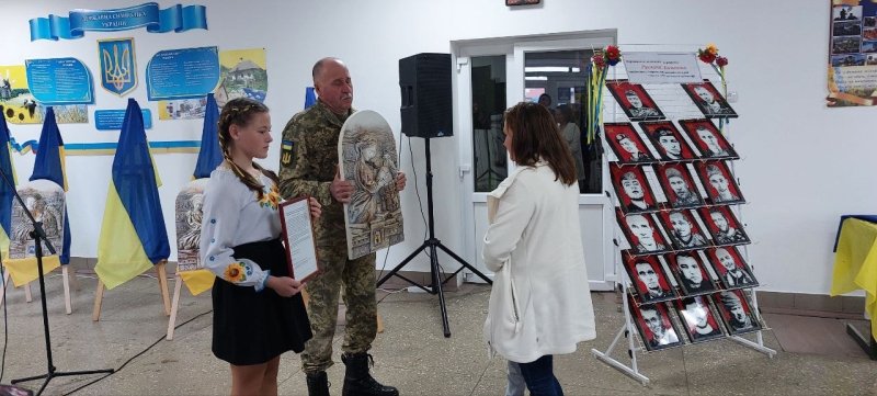 Під час заходу була представлена персональна виставка робіт майданівця, добровольця, який в 2014 році пішов на схід, військового художника Руслана Кашаюка. Саме він увічнив обличчя своїх загиблих побратимів на склі.