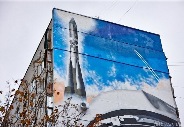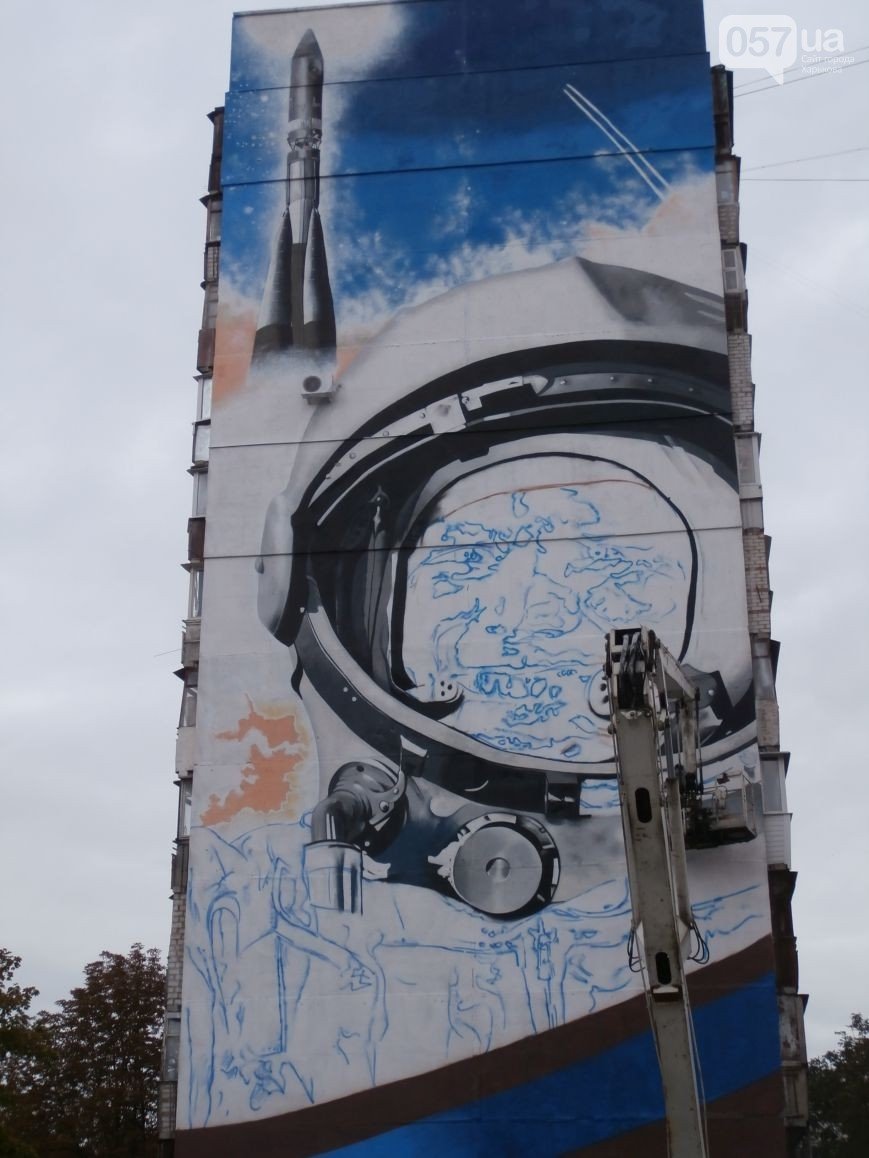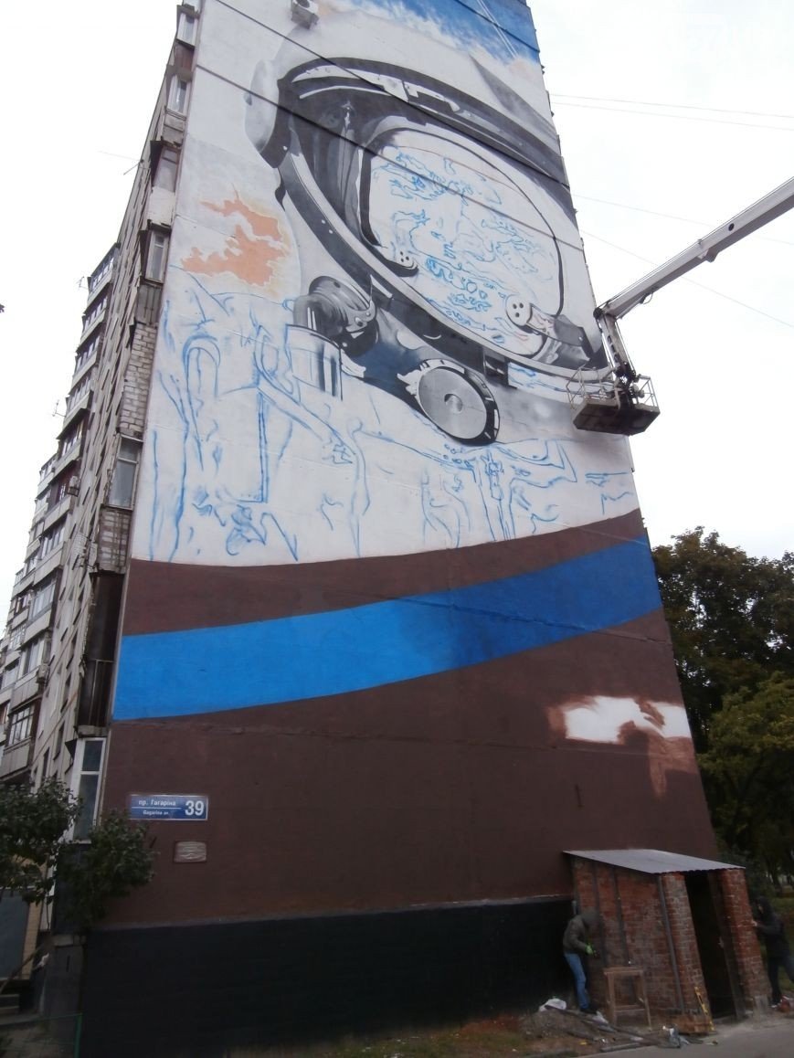 Як зазначив експерт Книги рекордів України Віталій Зорін, портрет Юрія Гагаріна на фасаді будинку - це найбільше графіті в Україні.