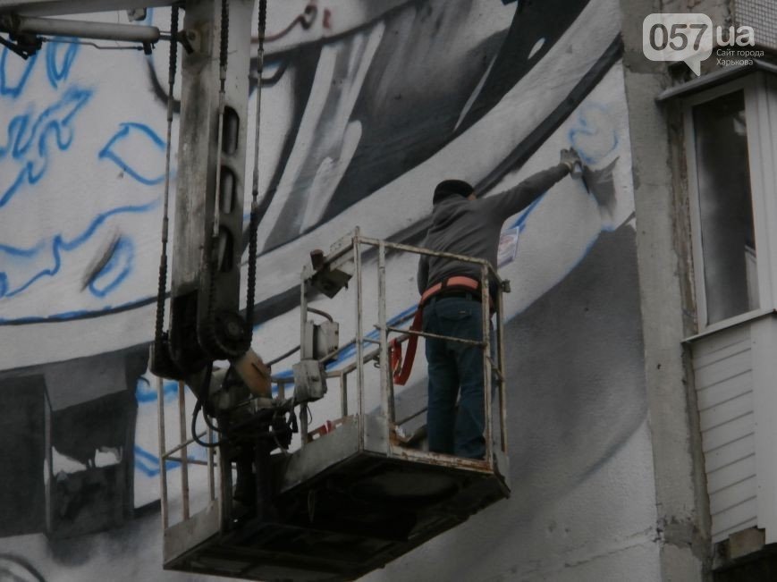 А ось так створювалося це графіті (фото - з сайту 057.ua)