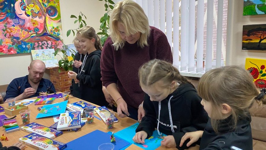 Під час другої частини арттерапевтичного заходу бійці разом із дітьми створювали мультфільм. Бібліотекарка та волонтерка Любов Фрадинська розповіла, що мультитерапією почала займатися декілька років тому з онкохворими дітьми, зараз свій досвід вирішила використати для допомоги військовим.