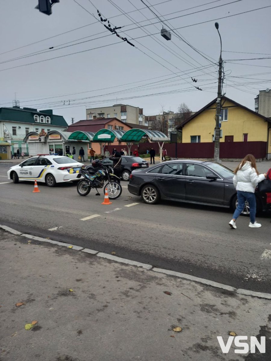 ДТП трапилась у п'ятницю, 11 листопада, близько 12:00, на вулиці Ковельській у Луцьку: перед пішохідним переходом мотоцикл врізався у легковик Audi. Інформацію підтвердили у поліції Волині.
