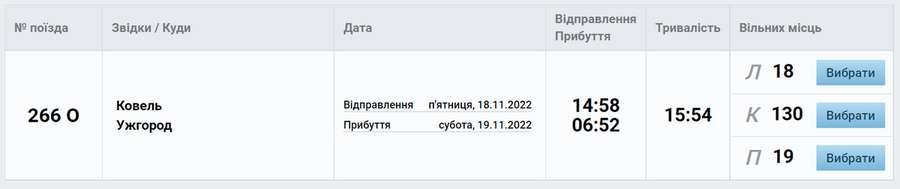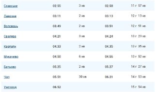 Прибуття до Ужгорода – о 6:52 наступного дня.
