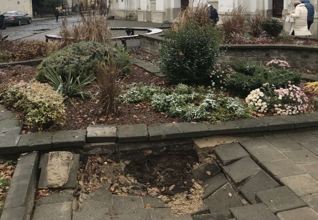 17 листопада поруч Кафедрального костелу Святих Апостолів Петра і Павла у Луцьку виявили повторний провал пішохідної частини дорожнього покриття.