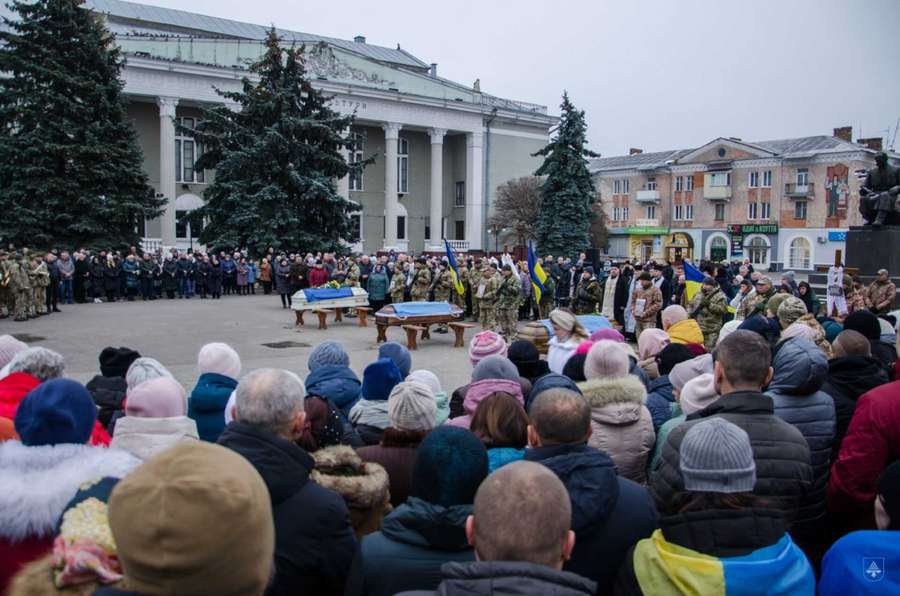 Сотні мешканців прийшли віддати останню шану Захисникам. Міський голова Борис Карпус висловив співчуття рідним, друзям та побратимам воїнів.