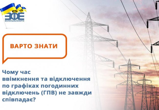 Графік погодинного відключення (ГПВ) хоч і є плановим, однак застосовується він у зв’язку із ненормальним режимом роботи енергосистеми України, тому вказані у ньому години можуть змінюватись.