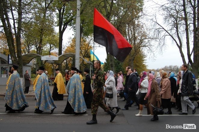 І голова Волинської обласної державної адміністрації Борис Петрович Клімчук і Митрополит Луцький та Волинський Михаїл чомусь "не побачили" стометрову шеренгу сформовану з ветеранів УПА, козаків та пластунів і чомусь "забули" привітати з святом Дня Козацтва і УПА жителів Луцька та Волині.