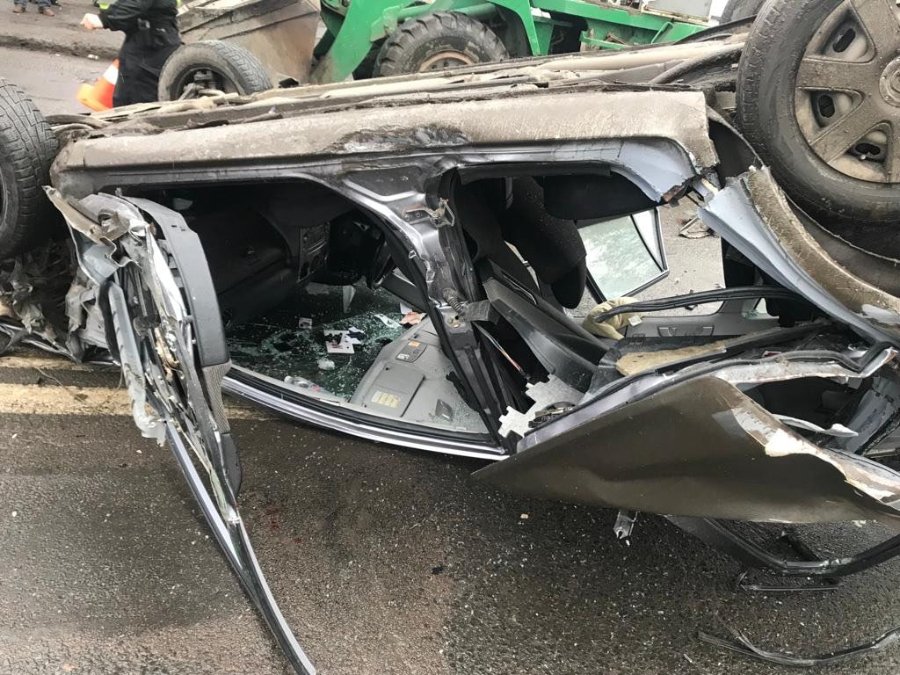 Наразі невідомі обставини, при яких автівка Mazda 6 перекинулася на дах.