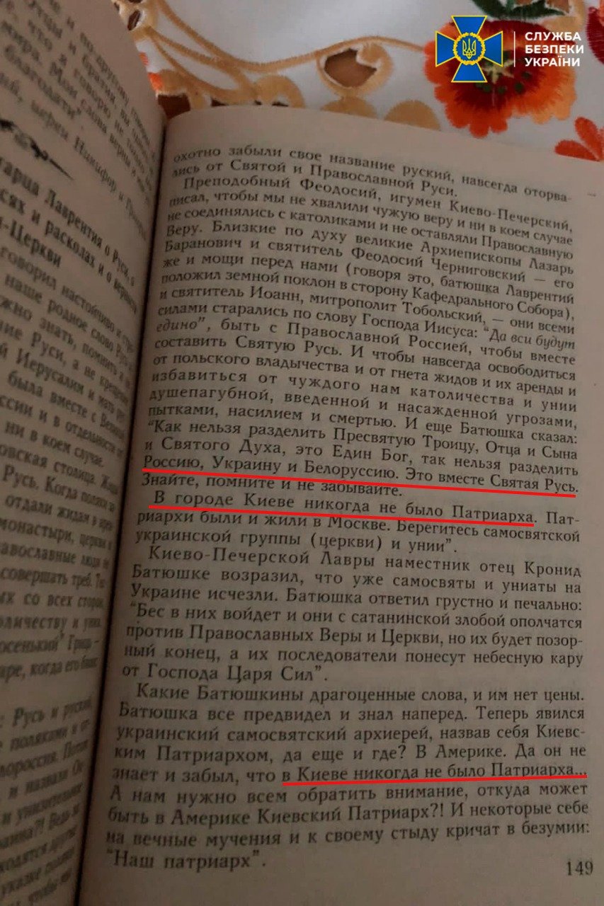 Серед виявленого правоохоронцями – книжки ксенофобського змісту з образливими вигадками про інші національності та релігії. У знайдених брошурах заперечується право України на незалежність, і наголошується, що росію, Україну та білорусь «нельзя разделить».