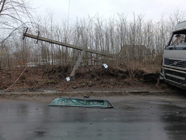В результаті вантажівка врізалася у стовп та повністю перекрила проїзд на в'їзді у село.