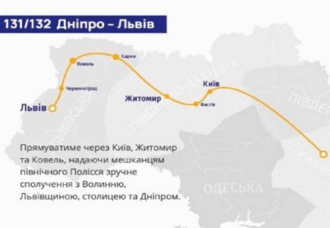 Укрзалізниця відкриває продаж на рейс № 131/132 Львів – Дніпро, що після піврічної перерви надасть залізничне сполучення північному Поліссю та Волині зі Львовом, Києвом та Дніпром одночасно.