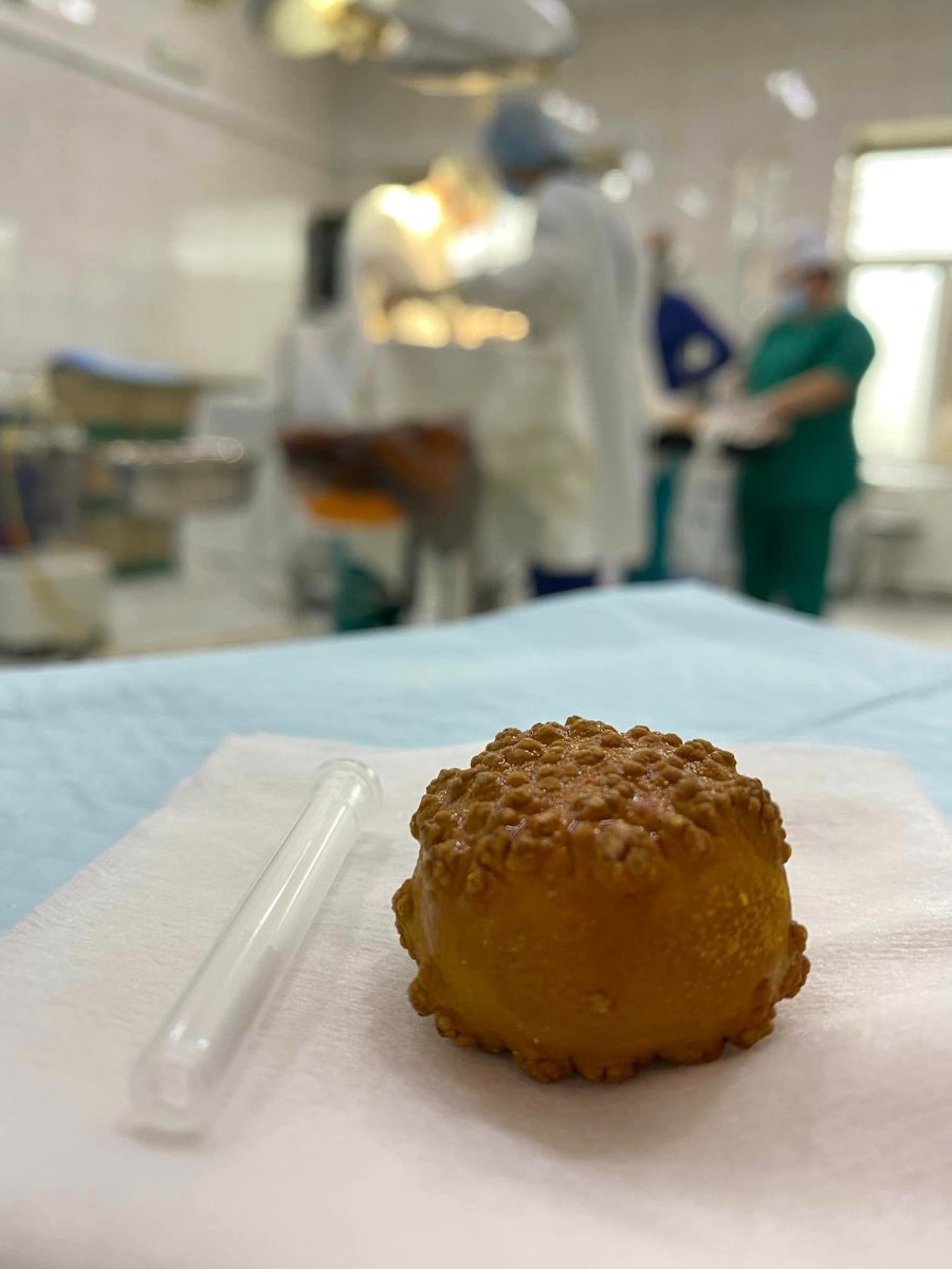 Шляхом оперативного втручання лікарі-урологи Олег Шипелик та Іван Мочерняк видалили чоловіку камінь сечового міхура з розмірами 50 х 30 мм.