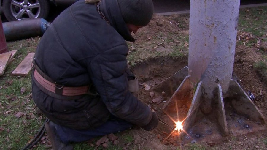 Демонтаж бордів із зовнішньою рекламою розпочали на проспекті Соборності. Робітник Сергій каже: рекламний щит важить орієнтовно пів тонни. Демонтувати його не важко, мають з собою спеціальне обладнання. Швидко працювати заважають лише вітер та холод.