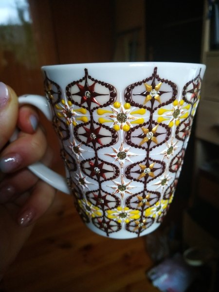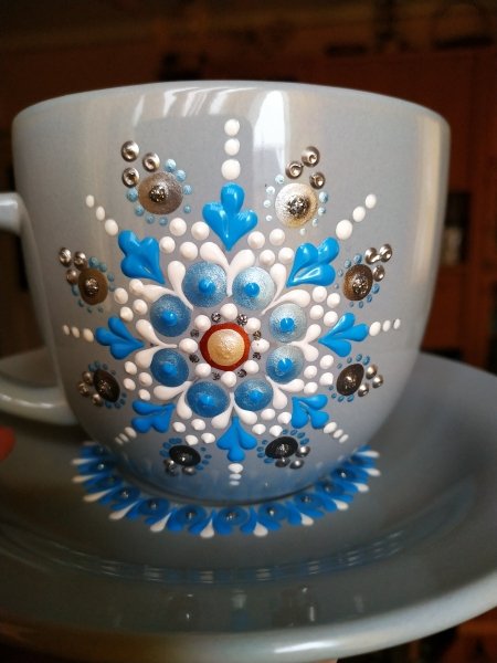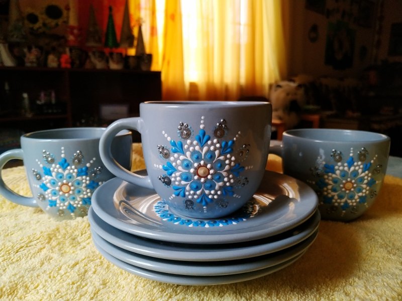 Майстриня творить вже протягом багато років, але не зупинялася і постійно удосконалювати свої навички. Одні із останніх робіт жінки - це блокноти та горнятка із точковим розписом, які і допомогли здобути нагороди на міжнародних і всеукраїнських конкурсах, як зазначає пані Валентина, точковий розпис - це не легка справа.