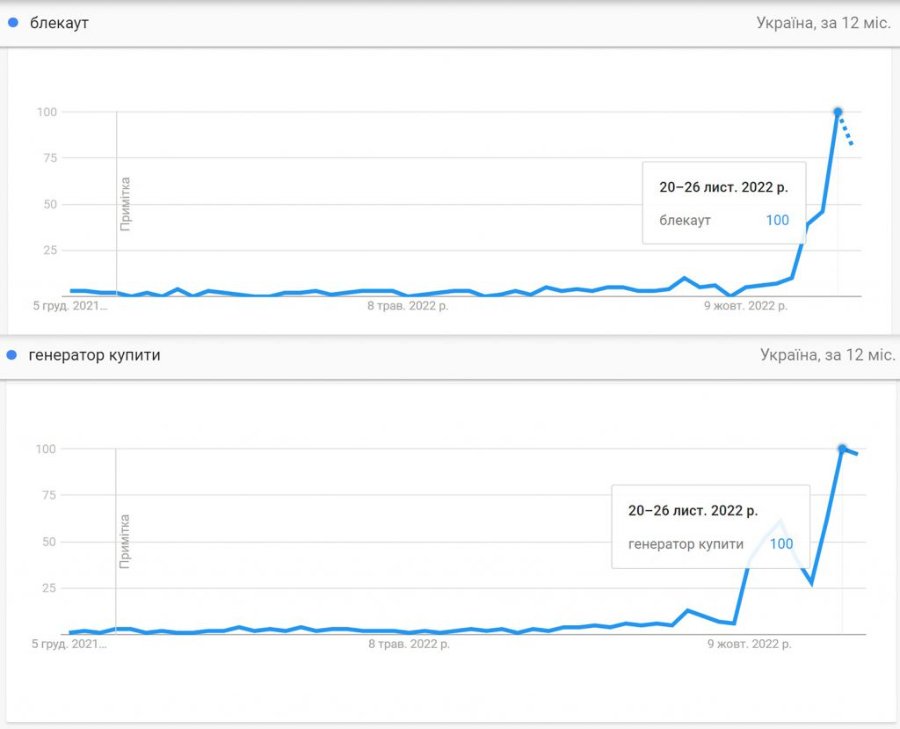 Слово «Блекаут» увійшло в активний ужиток в Україні з середини осені 2022-го. А пік пошукових запитів в інтернеті, за даними Google Trends, припав на 20-26 листопада. Яке воно життя в темряві і до цього добре знали люди з окупованих територій. З початку повномасштабного вторгнення Росія тероризувала українців захоплюючи наші ГЕС, АЕС і ТЕС. А 10 жовтня у відповідь на нібито підрив Керченського мосту в Криму вперше здійснила масовий обстріл об’єктів енергетики.