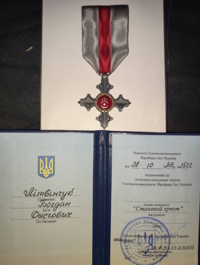 Почесний нагрудний знак Головнокомандувача Збройних Сил України «Сталевий хрест» одержав житель села Рованці Богдан Літвінчук.