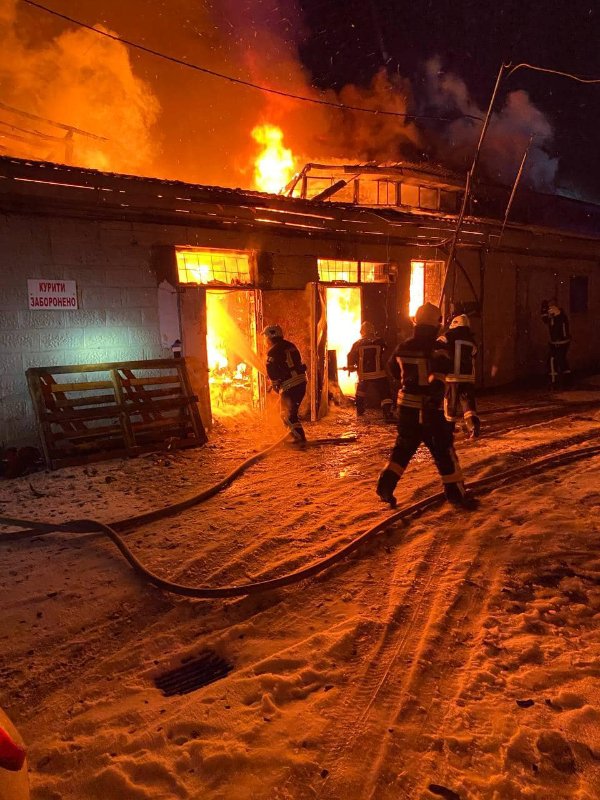 Луцькі рятувальники ліквідували пожежу в складському боксі поруч із із супермаркетом «Сільпо».