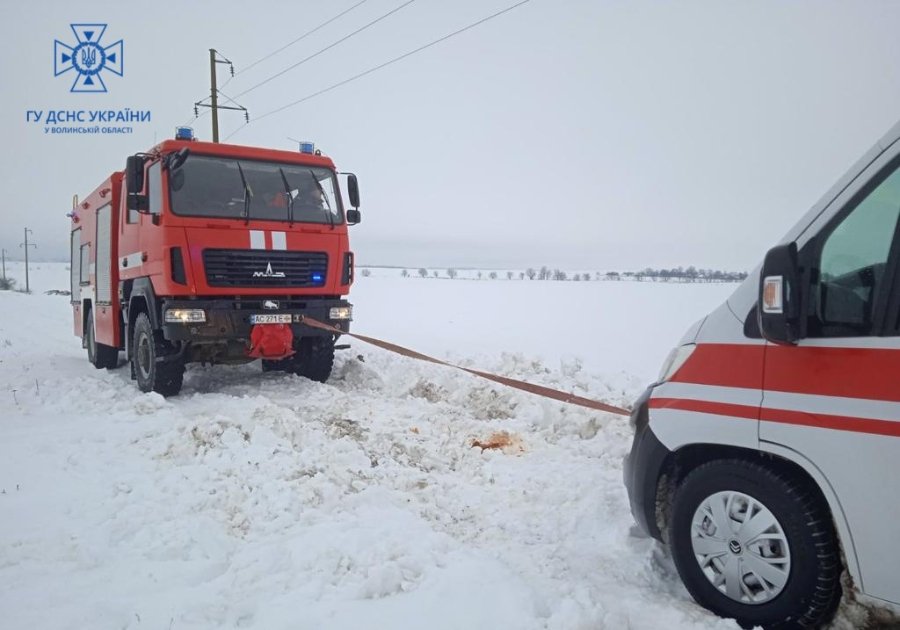 На Волині 16 грудня рятувальники відбуксирували зі снігового замету автомобіль швидкої допомоги.