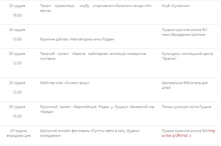В обласному центрі Волині та на території Луцької громади відбудеться низка заходів, присвячених Різдву та Новому року.