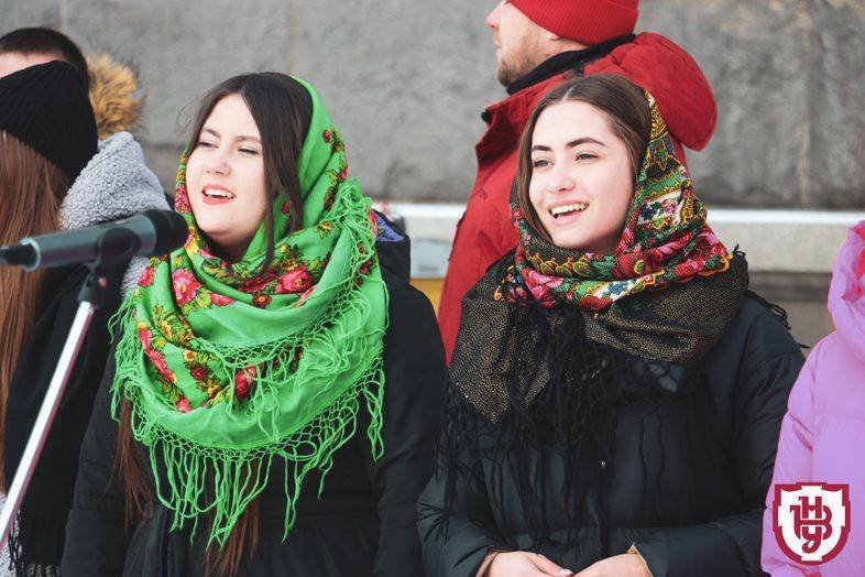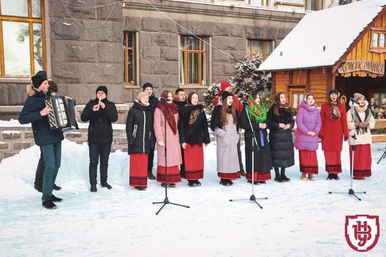 Студенти факультету культури і мистецтв у складі фольклорного ансамблю «Розмай» разом із керівником Олександром Марачем і колективом «Дивоструни» привітали присутніх із прийдешніми святами колядками та новорічними піснями.