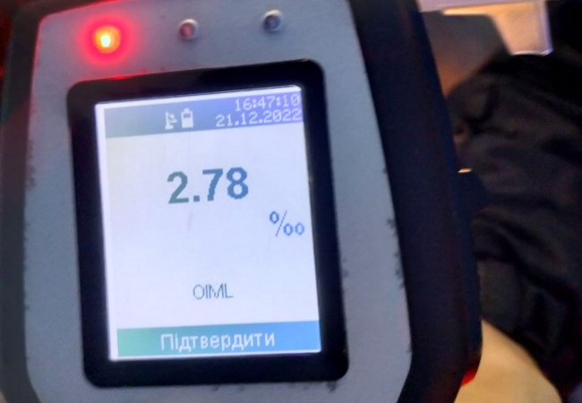 38-річному порушнику поліцейські запропонували пройти тест на пристрої Драгер. Результат виявився позитивний — 2,78. Такий показник майже в 14 разів перевищує допустиму норму.