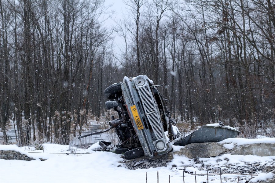 Обійти кілька ровів і барикад, перелізти через загорожі, не наступивши на шипи в асфальті. Пройтися вервечкою за прикордонниками замінованою дорогою. На узбіччі побачити перевернуту догори дригом зім'яту машину – вона теж була замінована, підірвалась від блискавки.