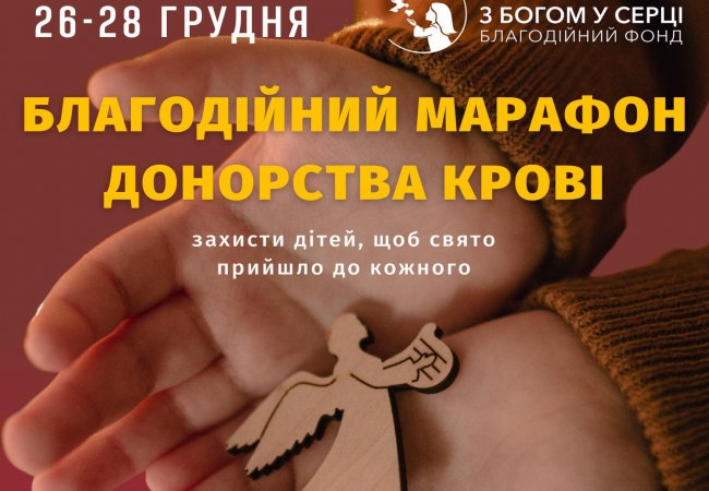 У Луцьку з 26 по 28 грудня триватиме благодійний марафон донорства крові. Волинський обласний центр служби крові та Благодійний Фонд «З Богом у серці» закликають лучан стати донорами.