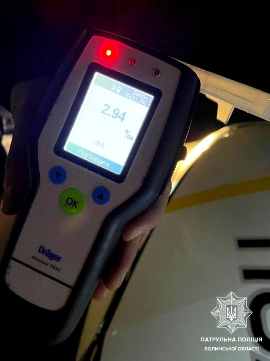 Винуватець мав явні ознаки алкогольного сп’яніння, тож патрульні провели освідування за допомогою пристрою Drager. Результат — 2,94 проміле. Такий показник перевищує допустиму норму алкоголю в крові майже у 15 разів.