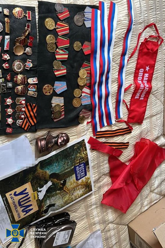Під час обшуку у затриманого виявили мобільний телефон із доказами листування з ворогом та символіку комуністичного тоталітарного режиму.