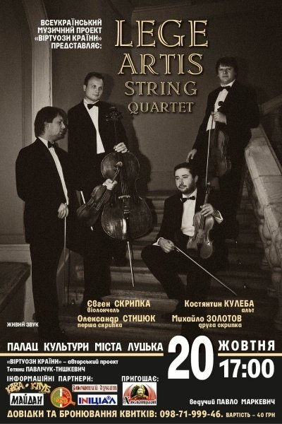 У Луцьку відбудеться концерт струнного квартету "Lege Artis".
