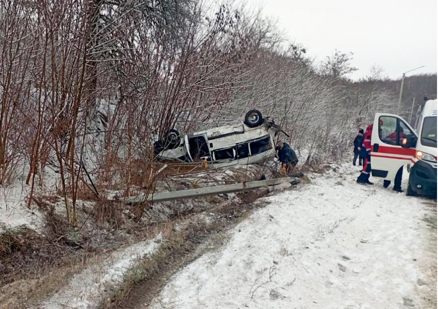 Водій автомобіля «Fiat Scudo» — 56-річний житель Волинської області, не впорався із керування та на заокругленій ділянці дороги злетів у кювет, збив електроопору та перекинувся