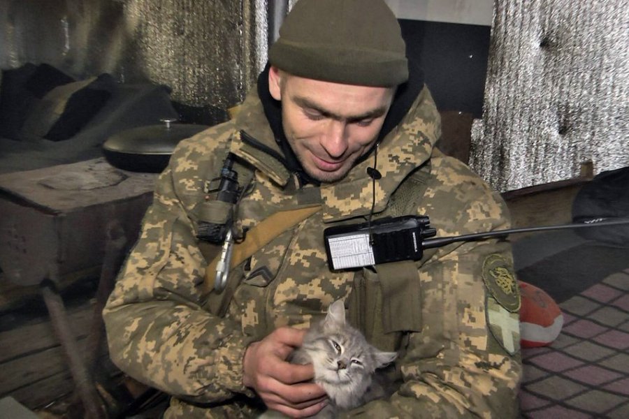 Молодший сержант Анатолій захищає Україну з 26 лютого. З собою у військо взяв домашню кішку "М'яту", яка тепер полюбляє лазити по деревах та спати на тапчані в польовому наметі.
