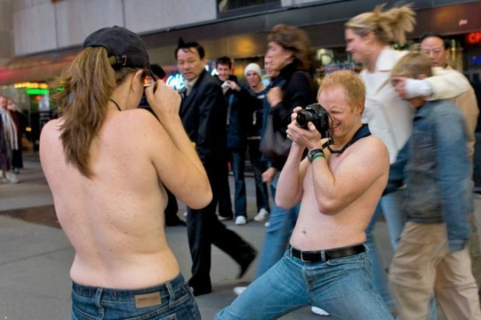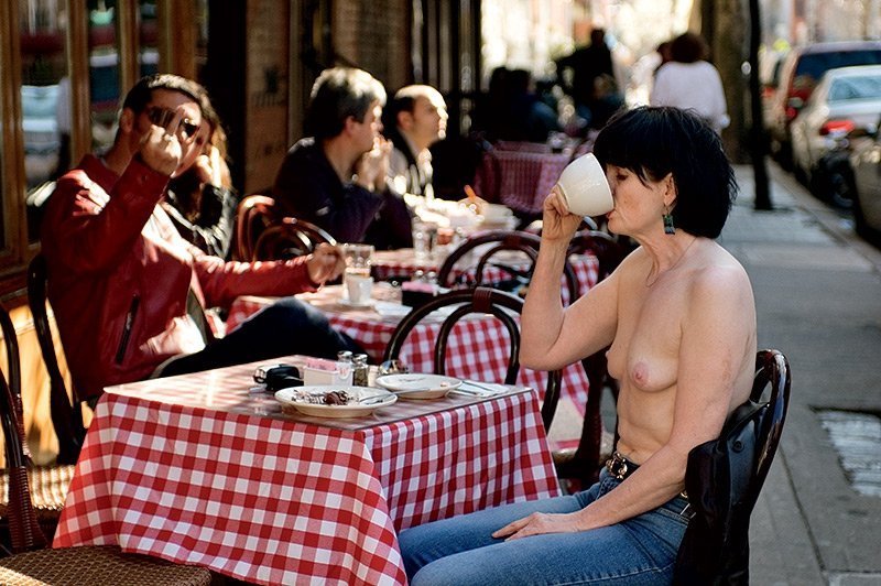 Американський фотограф Джордан Меттер поставив сміливий соціальний експеримент: він протягом багатьох років закликав жінок виходити з оголеними грудьми на вулиці Нью-Йорка.