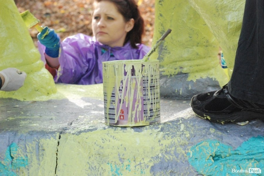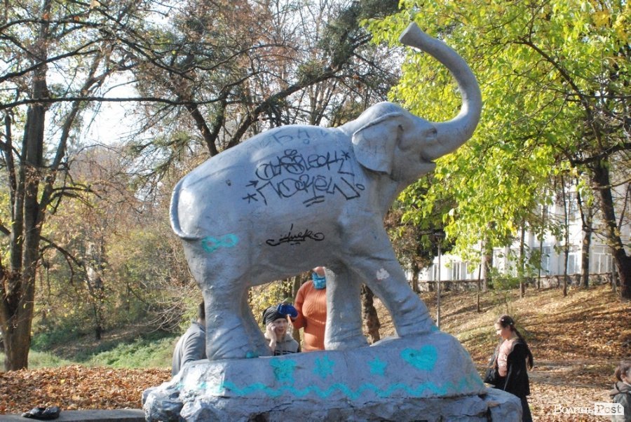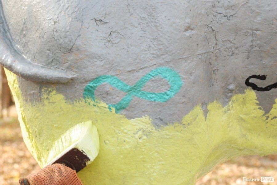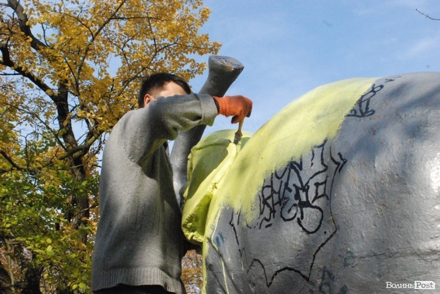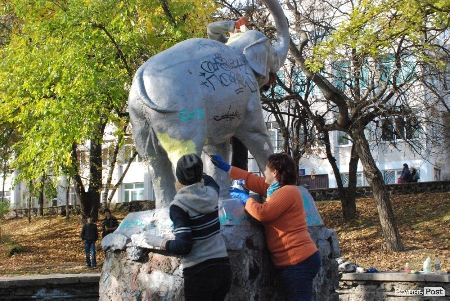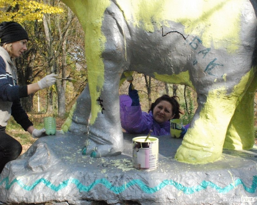 Троє мешканців Луцька перефарбували фігуру слоника, яка розташована за Палацом учнівської молоді, в оливковий колір.