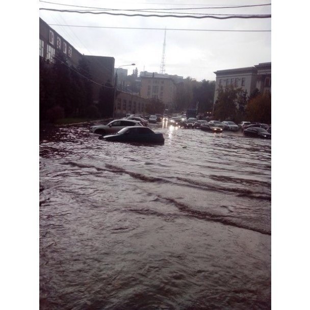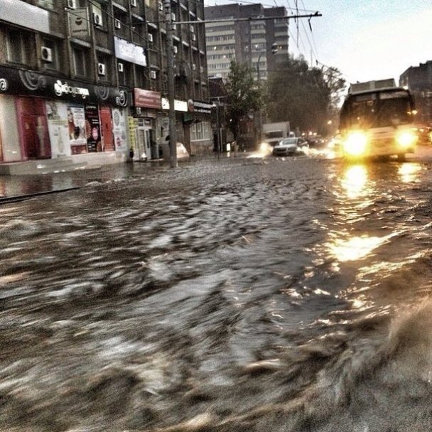 В деяких місцях вода доходила до вікон першого поверху. Рятувальні і комунальні служби протягом ночі займалися ліквідацією наслідків багатогодинного зливи, що супроводжувалися грозою і сильним вітром.