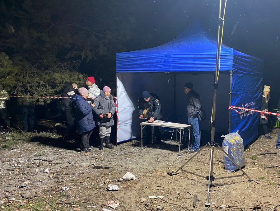 Навпроти будинку №118 по вул. Набережна Перемоги на зупинці громадського транспорту розгорнуто штаб прийому звернень людей, постраждалих внаслідок ракетного удару.
