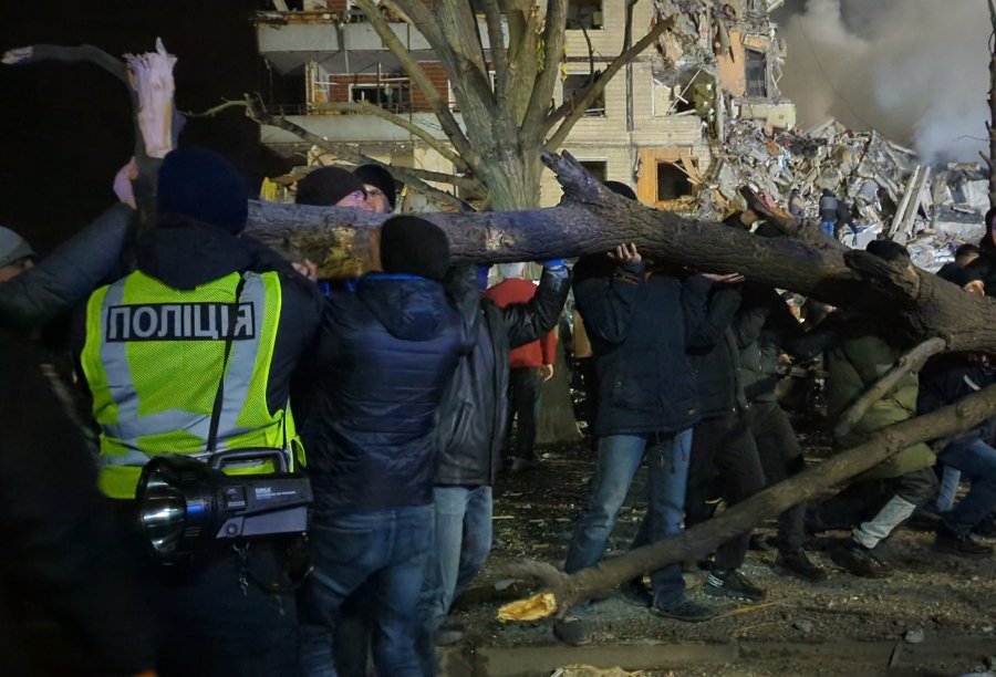 У Дніпрі на місці влучання російських ракет триває розбір завалів та документування воєнного злочину. Станом на 20:00 з-під завалів багатоповерхівки врятували 35 осіб, зокрема 6 дітей.
