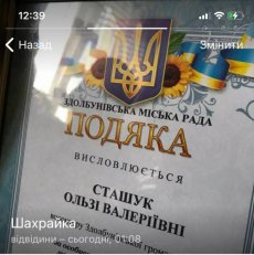 Спершу аналізуємо профіль. Зазвичай у шахраїв фото в телеграмі відсутнє, або ж замість нього – патріотична символіка. Тому, аби відкинути від себе усі можливі підозри, «волонтерка» вирішила вкрасти аж три фото справжньої Сташук. Ба більше, на одному з них пані Ольга – із підписаним її іменем сертифікатом, на іншому – подяка від Здолбунівської міської ради за волонтерську діяльність.