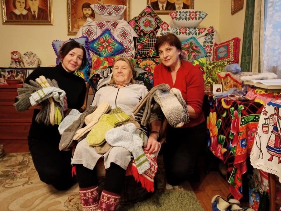 92-річна жителька села під Луцьком в'яже шкарпетки для українських воїнів