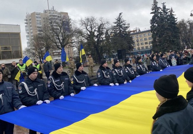В обласному центрі Волині 22 січня до Дня Соборності України розгорнули 200-метровий прапор, створивши символічний "ланцюг єдності".