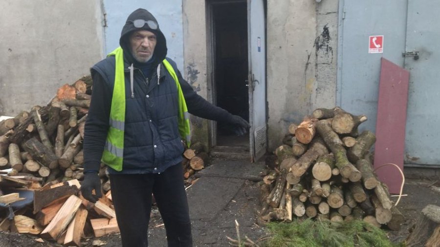 Зеленішу хвою комунальники передають в зоопарк. Розподіляє дерева працівник котельні Володимир Адамович.