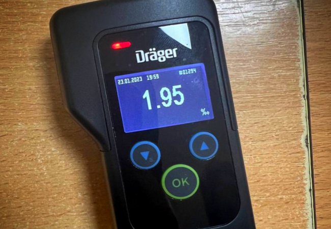 Чоловік мав явні ознаки алкогольного сп’яніння, однак проходити тест на приладі Drager відмовився. Крім того, поводився агресивно та намагався втекти з місця події. Щодо громадянина патрульні застосували спецзасіб кайданки та доставили його в медзаклад. Лікар зробив висновок, що водій — нетверезий, результат — 1,95 проміле.