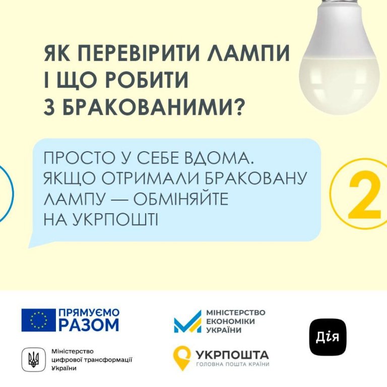 В "Укрпошті" наголошують, якщо котрась з отриманих клієнтом LED-ламп виявиться несправною, її можна замінити.