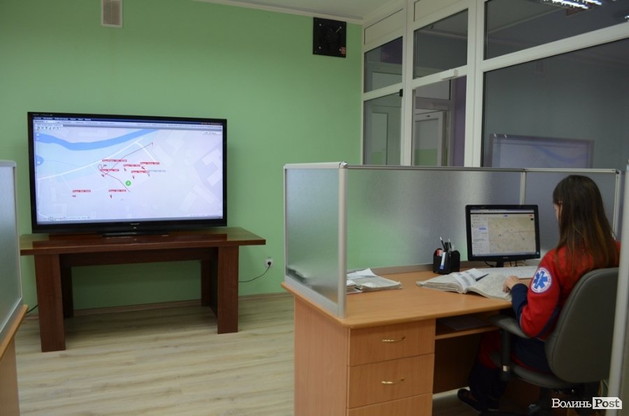 У диспетчерській встановили екран, на якому відображається пересування автомобілів екстреної медичної допомоги областю. Раніше, зі слів голови Волинської ОДА Бориса Клімчука, цей екран був встановлений у приміщенні облради.