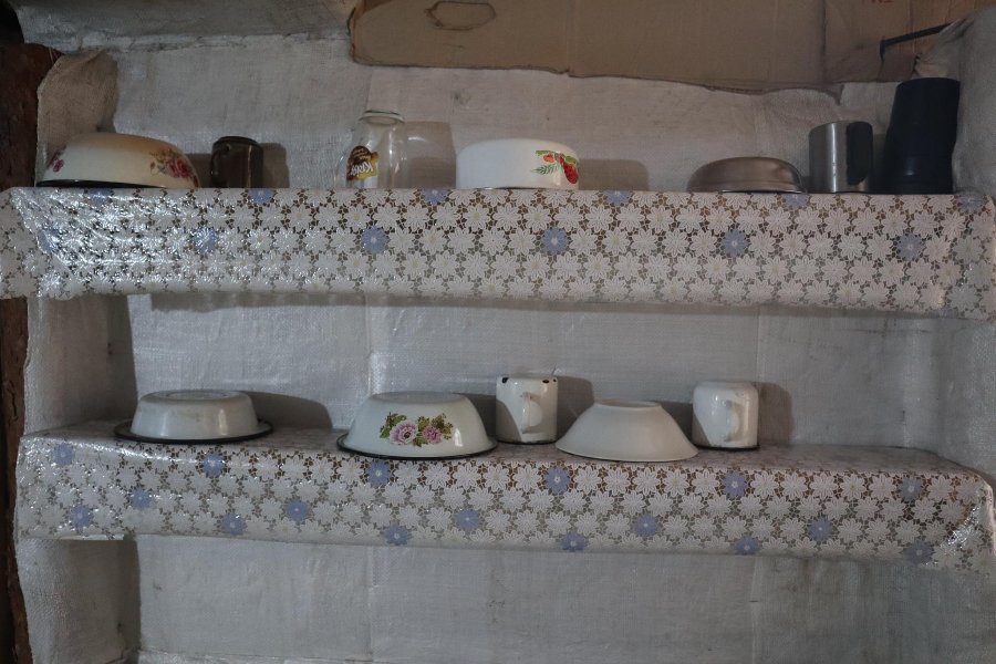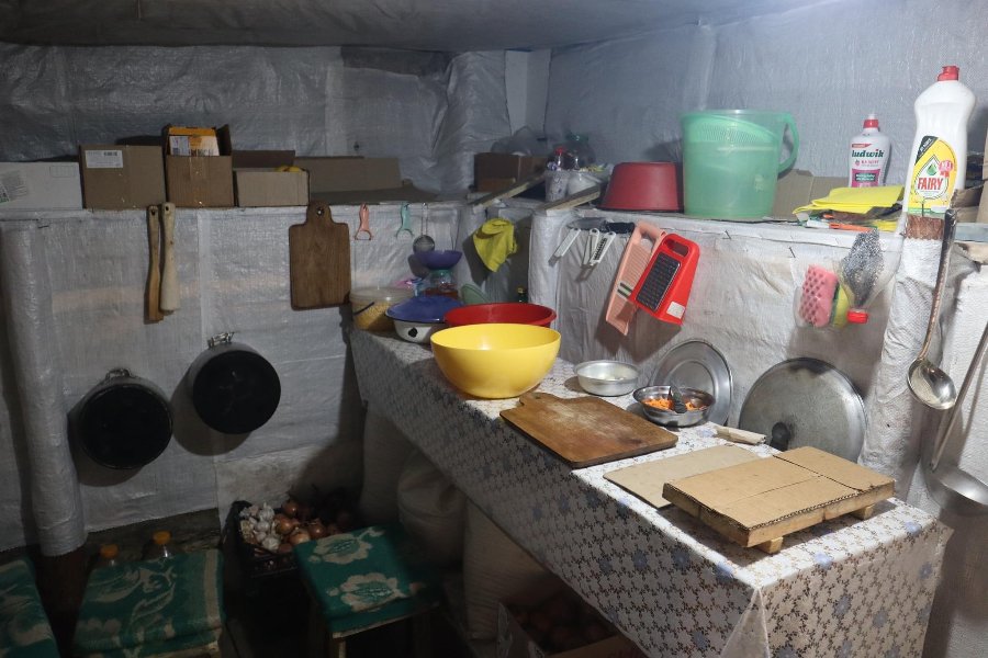 А ще на кухні, де щодня чаклує над сніданками, обідами й вечерями Роман (облаштованій у звичайному бліндажі, зведеному в глухих прикордонних лісах півночі Волині!) – ідеальний порядок. Столи та мисники акуратно застелені клейонкою. Слоїки з консервацією вишикувалися стрункими шеренгами на поличках. Каструлі з пательнями відпочивають після «наряду» висячи на цвяшках. Пакуночки зі спеціями дбайливо складені у картонну коробку. А в мисочках вже залиті водою подрібнені овочеві «заготовки»: картопля, морква, цибуля – бо ж обід уже не за горами…