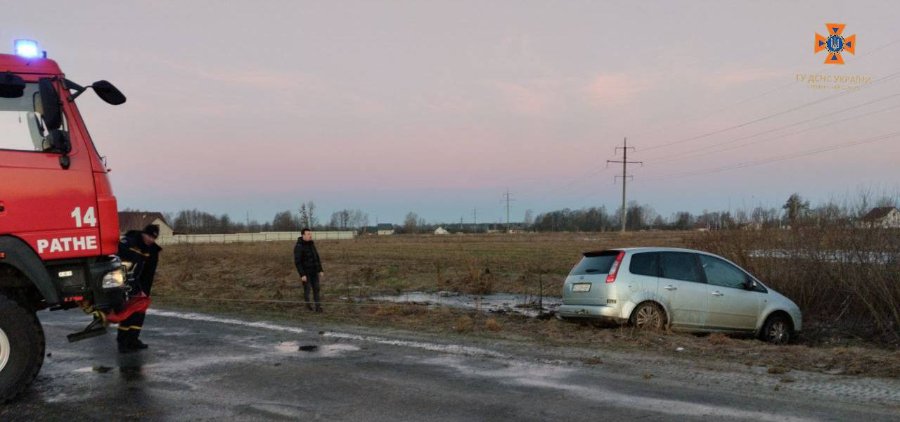 На місце події прибули рятувальники 14 ДПРЧ смт Ратне й за допомогою лебідки відбуксирували транспортний засіб на стійке дорожнє покриття.