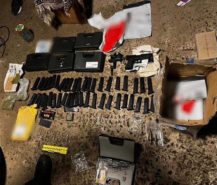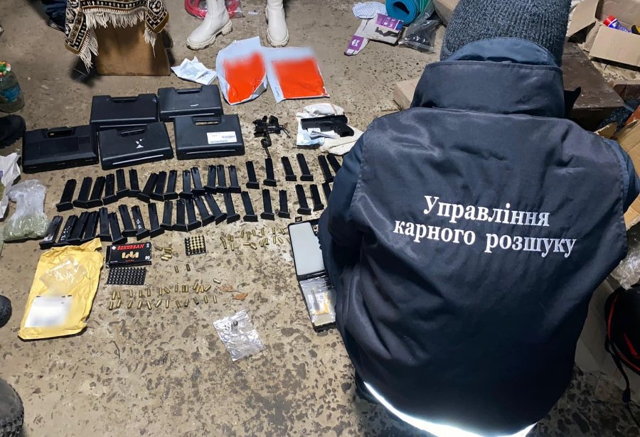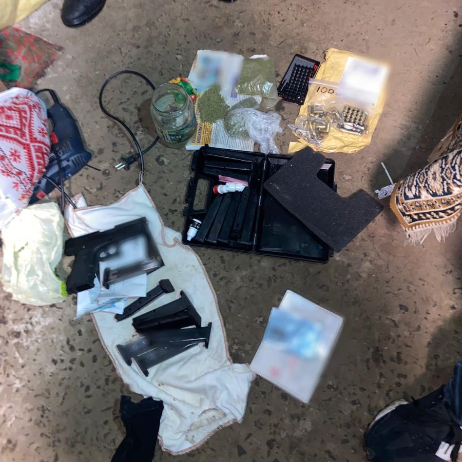 Вилучили десятки набоїв калібру 9 мм виготовлені кустарним способом, магазини до зброї, пістолети з візуальними ознаками внесених конструктивних змін, інструкції до пістолетів, металеві тиски для внесення конструктивних змін, а також мобільні телефони, банківські картки та інші речові докази, що свідчать про його причетність до злочинної діяльності.