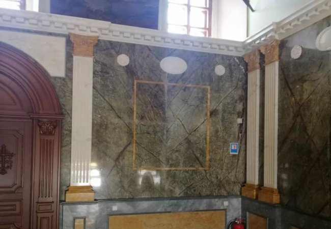 Зокрема, де раніше були ікони і прикрашали стіни собору, наразі пусті місця.
