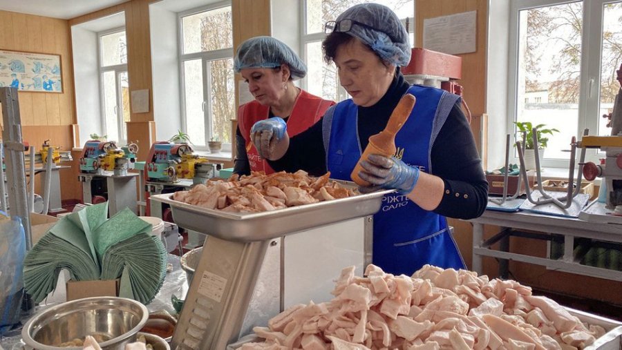 У Луцькому ліцеї № 1 волонтери, серед яких вчителі та батьки учнів, виготовляють "космічне сало" – приправлене перцем і паприкою мелене сало з часником. Від початку повномасштабної війни приготували для військових 13 тонн поживного продукту.