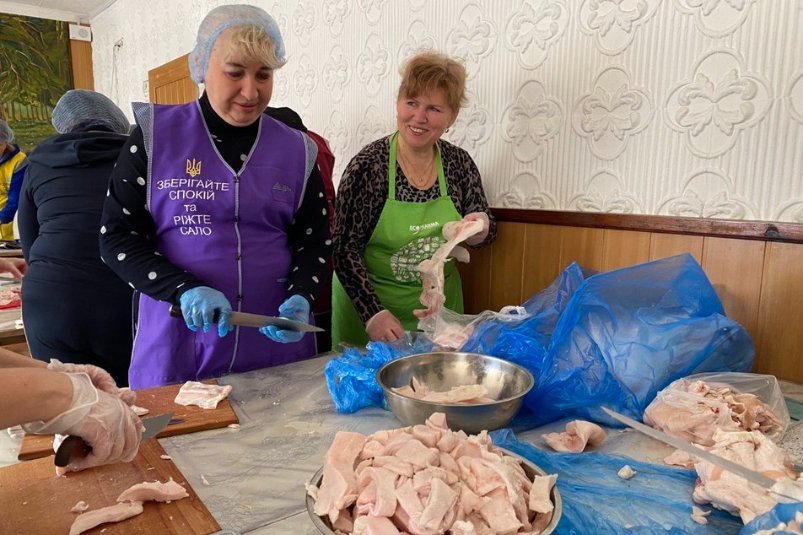 "Я допомагаю з електричною частиною, є м’ясорубка – її зібрати, скласти, нагострити ножі, віднести сало, допомогти винести, повантажити. Допомагаємо всі разом", – додав чоловік.